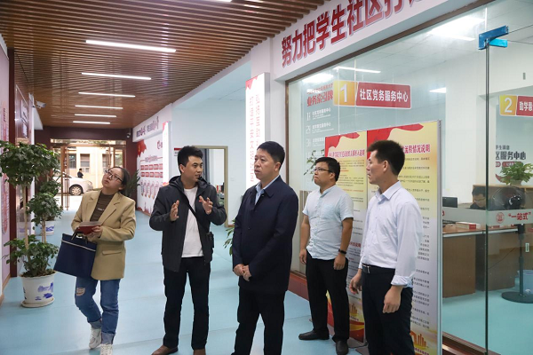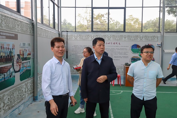 调研组一行先后参观了我校铸牢中华民族共同体意识主题展示馆、蹴球馆、射弩场、毽球场、一站式服务中心等,详细了解我校铸牢中华民族共同体意识宣传教育工作开展情况。